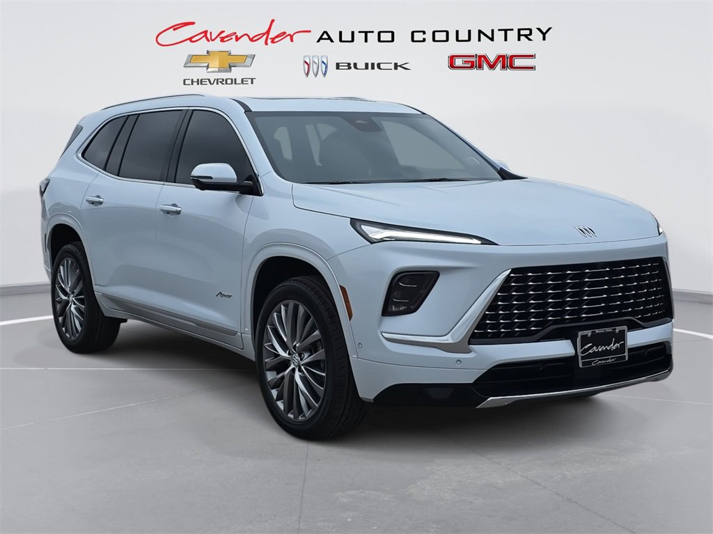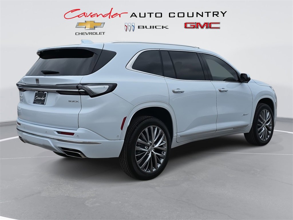 Features: Floor Liner Package (1st and 2nd Row All-Weather Floor Liners, 3rd Row All-Weather Floor Liner, and Integrated Cargo Liner), Front Mounting License Plate Bracket Package, Preferred Equipment Group 1SP, Super Cruise Package (Driver Attention Assist, Enhanced Automatic Parking Assist, and Super Cruise), FWD, 16 Speakers, 3rd row seats: split-bench, 4-Wheel Disc Brakes, ABS brakes, Adaptive suspension, Air Conditioning, Alloy wheels, AM/FM radio: SiriusXM with 360L, Apple CarPlay/Android Auto, Auto High-beam Headlights, Auto tilt-away steering wheel, Auto-dimming door mirrors, Auto-dimming Rear-View mirror, Automatic temperature control, Bose Performance 16-Speaker Audio System with Subwoofer, Brake assist, Bumpers: body-color, Compass, Delay-off headlights, Driver 4-Way Power Lumbar Seat Adjuster, Driver 8-Way Power Seat Adjuster, Driver door bin, Driver Massage Control with 4-Way Power Lumbar, Driver vanity mirror, Dual front impact airbags, Dual front side impact airbags, Electronic Stability Control, Emergency communication system: OnStar and Buick connected services capable, Four wheel independent suspension, Front anti-roll bar, Front Bucket Seats, Front Center Armrest, Front dual zone A/C, Front Passenger 4-Way Power Lumbar Seat Adjuster, Front Passenger 6-Way Power Seat Adjuster, Front Passenger Massage Control with 4-Way Power Lumbar, Front reading lights, Fully automatic headlights, Garage door transmitter, Heads-Up Display, Heated door mirrors, Heated Driver and Front Passenger Seats, Heated front seats, Heated rear seats, Heated steering wheel, Illuminated entry, Leather steering wheel, Low tire pressure warning, Memory seat, Memory Settings, Navigation System, Occupant sensing airbag, Outside temperature display, Overhead airbag, Overhead console, Panic alarm, Passenger door bin, Passenger vanity mirror, Power door mirrors, Power driver seat, Power Liftgate, Power moonroof, Power passenger seat, Power steering, Power windows, Premium audio system: Buick Infotainment System, Quilted and Perforated Leather-Appointed Seat Trim, Radio data system, Radio: Infotainment Center, Rain sensing wipers, Rear air conditioning, Rear anti-roll bar, Rear reading lights, Rear side impact airbag, Rear window defroster, Rear window wiper, Remote keyless entry, Security system, SiriusXM with 360L Trial Subscription, Speed control, Speed-sensing steering, Spoiler, Steering wheel memory, Steering wheel mounted audio controls, Tachometer, Telescoping steering wheel, Tilt steering wheel, Traction control, Trip computer, Turn signal indicator mirrors, Variably intermittent wipers, Ventilated Driver and Front Passenger Seats, Ventilated front seats, Ventilated rear seats, Vertical Cargo Net, Voltmeter, Wheels: 22 Alloy with Avenir Pearl Nickel Finish, Wireless Apple CarPlay, and Wireless Google Android Auto. Price includes: $1000 - Buick GMC Bonus Cash. Exp. 03/02/2026 $500 - Buick & GMC Consumer Cash Program. Exp. 03/02/2026