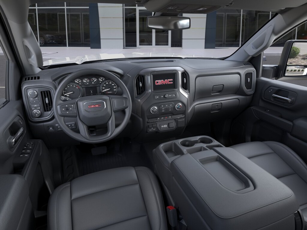 Features: Convenience Package (Deep-Tinted Glass, Electric Rear-Window Defogger, EZ Lift Power Lock & Release Tailgate, LED Cargo Area Lighting, and Steering Wheel-Mounted Cruise Control), Preferred Equipment Group 1SA (2 Charge/Data USB Ports, 2-Speed Electronic Shift Transfer Case, Chrome Grille w/Flat Black Grille Insert Bars, Push Button Start, Remote Keyless Entry, Solar Absorbing Tinted Glass, and Wireless Phone Projection), Snow Plow Prep/Camper Package (220 Amp Alternator), Suspension Package, 10-Speed Automatic, 4WD, Jet Black Vinyl, 120-Volt Bed Mounted Power Outlet, 120-Volt Instrument Panel Power Outlet, 3.73 Rear Axle Ratio, 4-Way Manual Driver Seat Adjuster, 4-Way Manual Passenger Seat Adjuster, 4-Wheel Disc Brakes, 6 Speakers, 6-Speaker Audio System Feature, ABS brakes, Air Conditioning, AM/FM radio, Apple CarPlay/Android Auto, Auto High-beam Headlights, Auto-Dimming Inside Rear-View Mirror, Automatic Emergency Braking, Back-Up Alarm Calibration, Brake assist, Buckle to Drive, Bumpers: chrome, Compass, Delay-off headlights, Driver door bin, Dual front impact airbags, Dual front side impact airbags, Electronic Stability Control, Following Distance Indicator, Forward Collision Alert, Front 40/20/40 Split-Bench Seats w/Lockable Storage, Front anti-roll bar, Front Center Armrest w/Storage, Front License Plate Kit, Front Pedestrian Braking, Front reading lights, Front wheel independent suspension, Fully automatic headlights, Heavy-Duty 80 Amp-Hr Battery, Illuminated entry, Integrated Trailer Brake Controller, IntelliBeam Automatic High Beam On/Off, Lane Departure Warning System, Low tire pressure warning, Occupant sensing airbag, Outside temperature display, Overhead airbag, Overhead console, Panic alarm, Passenger door bin, Passenger vanity mirror, Perimeter Lighting, Pickup Bed, Power steering, Power windows, Power-Adjustable Black Outside Mirrors, Premium audio system: GMC Infotainment System, Radio: AM/FM w/GMC Infotainment System, Rear reading lights, Rear step bumper, Remote keyless entry, SiriusXM Radio, Split folding rear seat, Tachometer, Tilt steering wheel, Traction control, Trip computer, Upfitter Switch Kit (5), Variably intermittent wipers, Vinyl Seat Trim, and Voltmeter.
