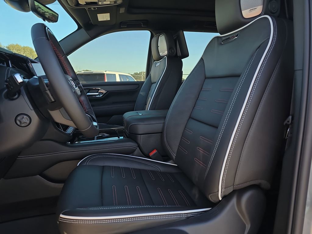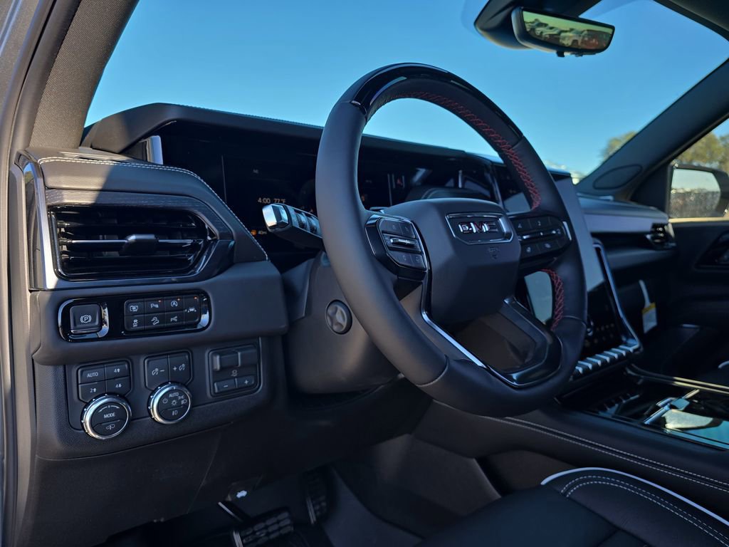 Features: Advanced Security Package (Glass Breakage Sensor, Theft-Deterrent Alarm System, Vehicle Inclination Sensor, and Vehicle Interior Movement Sensor), Advanced Technology Package (3 Years OnStar One, Driver Attention Assist, Inside Rearview Auo-Dimming Rear Camera Mirror, Rear Seat Media System, and Super Cruise), Enhanced Trailering Technology Package (Trailer Camera Provisions, Trailering Assist Guidelines, and Wired Auxiliary Trailer Camera), Floor Liner Package (1st and 2nd Rows All-Weather Floor Liners, 3rd Row All-Weather Floor Liners, and All-Weather Cargo Mat), License Plate Front Mounting Package, Max Trailering Package (Blind Zone Steering Assist with Trailering, Extra Capacity Cooling System, Hitch View, Integrated Trailer Brake Controller, and Smart Trailer Integration Indicator), Preferred Equipment Group 4SG (15 Diagonal Multi-Color Head-Up Display, 4-Spoke Leather-Wrapped Steering Wheel, 4-Way Power Driver Lumbar Seat Adjuster, 4-Way Power Front Passenger Lumbar Seat Adjuster, 8 Diagonal Rear Touchscreen Climate Control, AutoSense Hands-Free Power Liftgate, Black Roof-Mounted Luggage Rack Side Rails, Body-Color Door Handles, Bose 18-Speaker Surround with Centerpoint, Bright Front and Rear Door Sill Plates, Driver 2-Way Power Upper Shoulder, Driver Power Massage Seat, Dual Exhaust System, Dual-Pane Panoramic Power Sunroof, Front High-Approach Angle Fascia, Front Passenger 2-Way Power Upper Shoulder, Front Passenger Power Massage Seat, Heavy-Duty Air Filter, Hill Descent Control, Magnetic Ride Control Suspension, Perforated Heated and Ventilated Driver and Front Passenger Seats, Power Release 2nd Row Bucket Seats, Power Tilt and Telescopic Steering Column, Power-Retractable Assist Steps, Red Horizontal-Mounted Recovery Hooks, Sport Pedal Cover Kit, Wheel Locks (set of 4), and Wheels: 20 x 9 Machined and Painted), Premium Capability Package with Active Response 4WD (Air Ride Adaptive Suspension and Electronic Limited Slip Differential (ELSD)), 4WD, 18 Speakers, 3.23 Rear Axle Ratio, 3rd row seats: split-bench, 4-Wheel Disc Brakes, ABS brakes, Adaptive suspension, Air Conditioning, Alloy wheels, AM/FM radio: SiriusXM with 360L, Apple CarPlay/Android Auto, Audio memory, Auto High-beam Headlights, Auto-dimming door mirrors, Auto-dimming Rear-View mirror, Auto-leveling suspension, Automatic temperature control, Brake assist, Bumpers: body-color, Compass, Delay-off headlights, Driver door bin, Driver vanity mirror, Dual front impact airbags, Dual front side impact airbags, Electronic Stability Control, Emergency communication system: OnStar and GMC connected services capable, Exterior Parking Camera Rear, Four wheel independent suspension, Front anti-roll bar, Front Bucket Seats, Front Center Armrest, Front dual zone A/C, Front fog lights, Front reading lights, Full Grain Leather Seats, Fully automatic headlights, Garage door transmitter, Headphones, Heads-Up Display, Heated door mirrors, Heated Driver and Front Passenger Seats, Heated front seats, Heated rear seats, Heated steering wheel, Illuminated entry, Leather steering wheel, Low tire pressure warning, Memory seat, Navigation system: GMC Connected Navigation, Night Vision, Occupant sensing airbag, Outside temperature display, Overhead airbag, Overhead console, Panic alarm, Passenger door bin, Passenger vanity mirror, Power door mirrors, Power driver seat, Power Liftgate, Power moonroof, Power p
