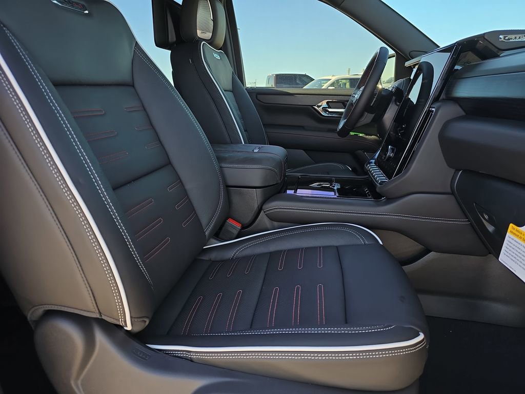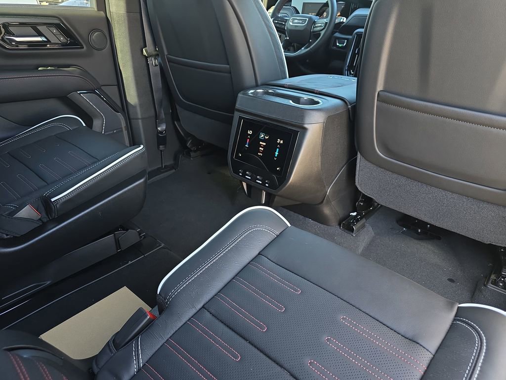 Features: Advanced Security Package (Glass Breakage Sensor, Theft-Deterrent Alarm System, Vehicle Inclination Sensor, and Vehicle Interior Movement Sensor), Advanced Technology Package (3 Years OnStar One, Driver Attention Assist, Inside Rearview Auo-Dimming Rear Camera Mirror, Rear Seat Media System, and Super Cruise), Enhanced Trailering Technology Package (Trailer Camera Provisions, Trailering Assist Guidelines, and Wired Auxiliary Trailer Camera), Floor Liner Package (1st and 2nd Rows All-Weather Floor Liners, 3rd Row All-Weather Floor Liners, and All-Weather Cargo Mat), License Plate Front Mounting Package, Max Trailering Package (Blind Zone Steering Assist with Trailering, Extra Capacity Cooling System, Hitch View, Integrated Trailer Brake Controller, and Smart Trailer Integration Indicator), Preferred Equipment Group 4SG (15 Diagonal Multi-Color Head-Up Display, 4-Spoke Leather-Wrapped Steering Wheel, 4-Way Power Driver Lumbar Seat Adjuster, 4-Way Power Front Passenger Lumbar Seat Adjuster, 8 Diagonal Rear Touchscreen Climate Control, AutoSense Hands-Free Power Liftgate, Black Roof-Mounted Luggage Rack Side Rails, Body-Color Door Handles, Bose 18-Speaker Surround with Centerpoint, Bright Front and Rear Door Sill Plates, Driver 2-Way Power Upper Shoulder, Driver Power Massage Seat, Dual Exhaust System, Dual-Pane Panoramic Power Sunroof, Front High-Approach Angle Fascia, Front Passenger 2-Way Power Upper Shoulder, Front Passenger Power Massage Seat, Heavy-Duty Air Filter, Hill Descent Control, Magnetic Ride Control Suspension, Perforated Heated and Ventilated Driver and Front Passenger Seats, Power Release 2nd Row Bucket Seats, Power Tilt and Telescopic Steering Column, Power-Retractable Assist Steps, Red Horizontal-Mounted Recovery Hooks, Sport Pedal Cover Kit, Wheel Locks (set of 4), and Wheels: 20 x 9 Machined and Painted), Premium Capability Package with Active Response 4WD (Air Ride Adaptive Suspension and Electronic Limited Slip Differential (ELSD)), 4WD, 18 Speakers, 3.23 Rear Axle Ratio, 3rd row seats: split-bench, 4-Wheel Disc Brakes, ABS brakes, Adaptive suspension, Air Conditioning, Alloy wheels, AM/FM radio: SiriusXM with 360L, Apple CarPlay/Android Auto, Audio memory, Auto High-beam Headlights, Auto-dimming door mirrors, Auto-dimming Rear-View mirror, Auto-leveling suspension, Automatic temperature control, Brake assist, Bumpers: body-color, Compass, Delay-off headlights, Driver door bin, Driver vanity mirror, Dual front impact airbags, Dual front side impact airbags, Electronic Stability Control, Emergency communication system: OnStar and GMC connected services capable, Exterior Parking Camera Rear, Four wheel independent suspension, Front anti-roll bar, Front Bucket Seats, Front Center Armrest, Front dual zone A/C, Front fog lights, Front reading lights, Full Grain Leather Seats, Fully automatic headlights, Garage door transmitter, Headphones, Heads-Up Display, Heated door mirrors, Heated Driver and Front Passenger Seats, Heated front seats, Heated rear seats, Heated steering wheel, Illuminated entry, Leather steering wheel, Low tire pressure warning, Memory seat, Navigation system: GMC Connected Navigation, Night Vision, Occupant sensing airbag, Outside temperature display, Overhead airbag, Overhead console, Panic alarm, Passenger door bin, Passenger vanity mirror, Power door mirrors, Power driver seat, Power Liftgate, Power moonroof, Power passe
