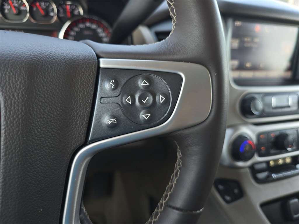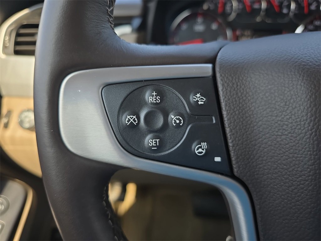 Features: Driver Alert Package (Safety Alert Seat), Enhanced Safety Package (Interior Movement Sensor, Self-Powered Horn, and Vehicle Inclination Sensor), HD Trailering Package (Integrated Trailer Brake Controller), Memory Package, Preferred Equipment Group 4SA (5 Auxiliary 12-volt Power Outlets, Black Assist Steps w/Chrome Strip, Color-Keyed Heated Leather-Wrapped Steering Wheel, Inside Rear-View Auto-Dimming Mirror, OnStar Basic Plan For 5 Years, OnStar w/4G LTE, Passive Entry System, Power 2nd Row 60/40 Split-Folding Bench Seat, Power Rear Liftgate, Power Tilt & Telescopic Steering Column, Power-Adjustable Pedals For Accelerator & Brake, Push Button Keyless Start, Rear Cross-Traffic Alert, Remote Keyless Entry, Side Blind Zone Alert w/Lane Change Alert, Universal Home Remote, and Wireless Charging), Premium Smooth Ride Suspension Package, Standard Suspension Package, 20 x 9 Polished Aluminum Wheels, 3rd row seats: split-bench, 4-Wheel Disc Brakes, 9 Speakers, ABS brakes, Adjustable pedals, Air Conditioning, Alloy wheels, AM/FM radio: SiriusXM, AppLink/Apple CarPlay and Android Auto, Auto-dimming door mirrors, Auto-dimming Rear-View mirror, Automatic temperature control, Brake assist, Bumpers: body-color, CD player, Compass, Console Insert (LPO), Delay-off headlights, Driver door bin, Driver vanity mirror, Dual front impact airbags, Dual front side impact airbags, Electronic Stability Control, Emergency communication system: OnStar Directions & Connections, Exterior Parking Camera Rear, Front anti-roll bar, Front Bucket Seats, Front Center Armrest, Front dual zone A/C, Front fog lights, Front reading lights, Front wheel independent suspension, Fully automatic headlights, Garage door transmitter, Heated & Cooled Full-Feature Reclining Bucket Seats, Heated door mirrors, Heated front seats, Heated rear seats, Heated steering wheel, Illuminated entry, Low tire pressure warning, Memory seat, Occupant sensing airbag, Outside temperature display, Overhead airbag, Overhead console, Painted Body-Side Moldings (LPO), Panic alarm, Passenger door bin, Passenger vanity mirror, Pedal memory, Perforated Leather-Appointed Seat Trim, Power door mirrors, Power driver seat, Power Liftgate, Power passenger seat, Power Second Row Bucket Seats, Power steering, Power windows, Premium audio system: IntelliLink, Radio: AM/FM/SiriusXM/HD, Radio: AM/FM/SiriusXM/HD w/Navigation, Rain sensing wipers, Rear air conditioning, Rear anti-roll bar, Rear reading lights, Rear seat center armrest, Rear window defroster, Rear window wiper, Remote keyless entry, Roof rack: rails only, Security system, Speed control, Speed-sensing steering, Split folding rear seat, Spoiler, Steering wheel memory, Steering wheel mounted audio controls, Tachometer, Telescoping steering wheel, Tilt steering wheel, Traction control, Trip computer, Turn signal indicator mirrors, Variably intermittent wipers, Ventilated front seats, and Voltmeter.