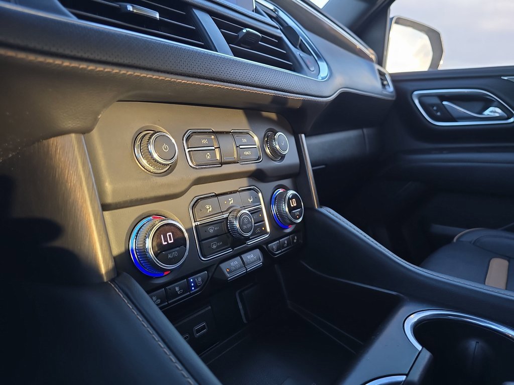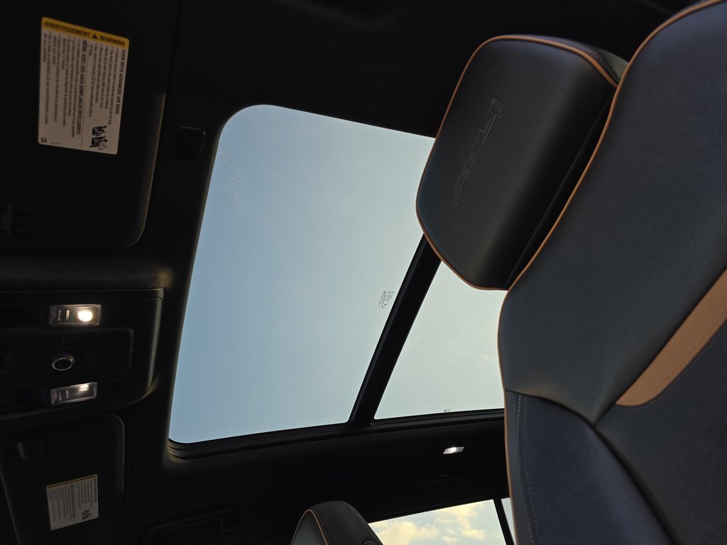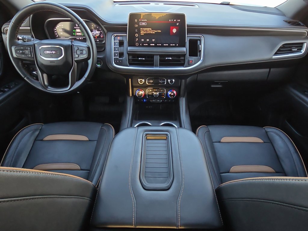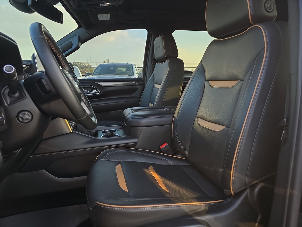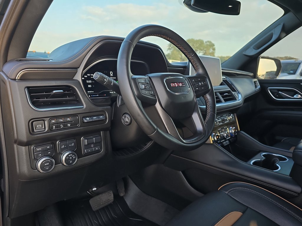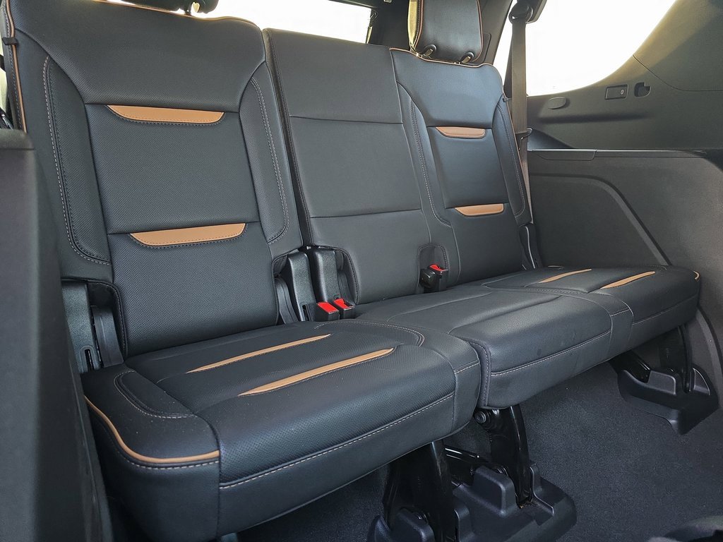 Features: AT4 Premium Plus Package (Dual-Pane Panoramic Power Sunroof and Power-Retractable Assist Steps), Max Trailering Package (Extra Capacity Cooling System), Preferred Equipment Group 4SB (2 Presets For Outside Rearview Mirrors, 3 Years of GMC Connected Services, 3 Years of OnStar Safety & Security, 3rd Row 60/40 Power-Folding Split-Bench Seat, Black Roof-Mounted Luggage Rack Side Rails, Bose 9-Speaker Stereo Audio System Feature, Bright Front & Rear Door Sill Plates, Front High-Approach Angle Fascia, Hands-Free Power Programmable Rear Liftgate, Heated & Ventilated Driver & Front Passenger Seats, Heated 2nd Row Outboard Position Seats, Heated Driver & Front Passenger Seats, Heated Steering Wheel, Heavy-Duty Air Filter, Hill Descent Control, Inside Rear-View Auto-Dimming Mirror, Outside Heated Power-Adjustable Mirrors, Power Release 2nd Row 60/40 Split-Folding Bench Seat, Power Tilt & Telescopic Steering Column, Red Horizontal-Mounted Recovery Hooks, Safety Alert Seat, Universal Home Remote, and Wireless Charging), Premium Capability Package w/Active Response 4WD (Air Ride Adaptive Suspension and Electronic Limited Slip Differential (eLSD)), Technology Package (15 Diagonal Multi-Color Head-Up Display, HD Surround Vision, and Rear Pedestrian Alert), 4WD, 3 Years of OnStar Safety & Security (DISC), 3.23 Rear Axle Ratio, 3rd row seats: split-bench, 4-Wheel Disc Brakes, 9 Speakers, ABS brakes, Adaptive suspension, Air Conditioning, Alloy wheels, AM/FM radio: SiriusXM with 360L, AM/FM Stereo, Apple CarPlay/Android Auto, Auto High-beam Headlights, Auto-dimming door mirrors, Auto-dimming Rear-View mirror, Auto-leveling suspension, Automatic Emergency Braking, Automatic temperature control, Brake assist, Bumpers: body-color, Compass, Delay-off headlights, Deleted 3 Years of OnStar Safety & Security, Driver door bin, Driver vanity mirror, Dual front impact airbags, Dual front side impact airbags, Electronic Stability Control, Emergency communication system: OnStar and GMC connected services capable, Following Distance Indicator, Forward Collision Alert, Four wheel independent suspension, Front & Rear Park Assist, Front anti-roll bar, Front Bucket Seats, Front Center Armrest, Front dual zone A/C, Front fog lights, Front Pedestrian Braking, Front reading lights, Fully automatic headlights, Garage door transmitter, Heated door mirrors, Heated front seats, Heated rear seats, Heated steering wheel, Hitch Guidance w/Hitch View, Illuminated entry, Integrated Trailer Brake Controller, IntelliBeam Automatic High Beam On/Off, Lane Change Alert w/Side Blind Zone Alert, Lane Keep Assist w/Lane Departure Warning, Low tire pressure warning, Magnetic Ride Control Suspension, Memory seat, Navigation System, Occupant sensing airbag, Outside temperature display, Overhead airbag, Overhead console, Panic alarm, Passenger door bin, Passenger vanity mirror, Perforated Leather Seating Surfaces, Power door mirrors, Power driver seat, Power Liftgate, Power passenger seat, Power Release 2nd Row Bucket Seats, Power steering, Power windows, Rain sensing wipers, Rear air conditioning, Rear anti-roll bar, Rear Cross Traffic Alert, Rear reading lights, Rear seat center armrest, Rear window defroster, Rear window wiper, Remote keyless entry, Roof rack: rails only, Security system, SiriusXM w/360L, Smart Trailer Integration Indicator, Speed control, Speed-sensing steering, Split folding rear seat, Spoiler,