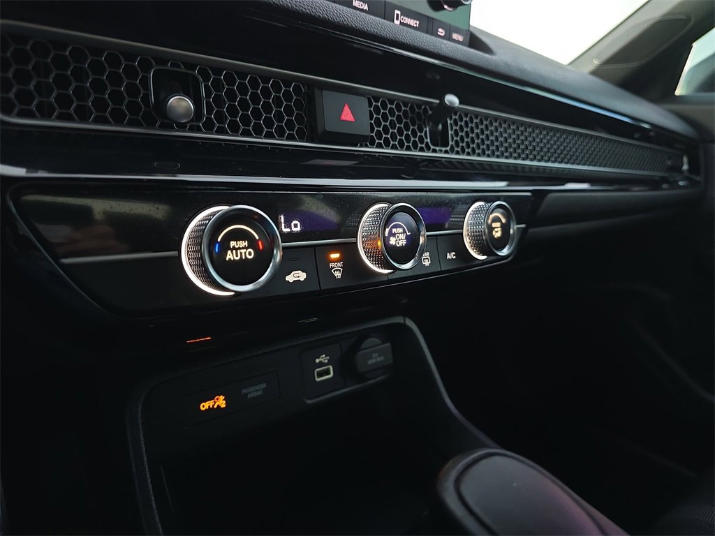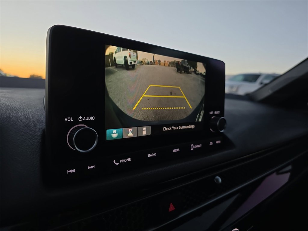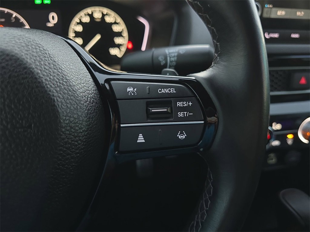 Features: Black w/Cloth Seat Trim, 4-Wheel Disc Brakes, 8 Speakers, ABS brakes, Adaptive Cruise Control: Adaptive Cruise Control (ACC) with Low-Speed Follow, Air Conditioning, Alloy wheels, AM/FM radio, Apple CarPlay/Android Auto, Auto High-beam Headlights, Automatic temperature control, Brake assist, Bumpers: body-color, Cloth Seat Trim, Delay-off headlights, Driver door bin, Driver vanity mirror, Dual front impact airbags, Dual front side impact airbags, Electronic Stability Control, Emergency communication system: HondaLink, Exterior Parking Camera Rear, Four wheel independent suspension, Front anti-roll bar, Front Bucket Seats, Front Center Armrest, Front reading lights, Fully automatic headlights, Illuminated entry, Knee airbag, Leather Shift Knob, Leather steering wheel, Low tire pressure warning, Occupant sensing airbag, Outside temperature display, Overhead airbag, Panic alarm, Passenger door bin, Passenger vanity mirror, Power door mirrors, Power steering, Power windows, Radio data system, Radio: 180-Watt Audio System w/8 Speakers, Rear anti-roll bar, Rear side impact airbag, Rear window defroster, Remote keyless entry, Security system, Speed control, Speed-sensing steering, Steering wheel mounted audio controls, Tachometer, Telescoping steering wheel, Tilt steering wheel, Traction control, Trip computer, and Wheels: 18 Gloss Black Alloy.